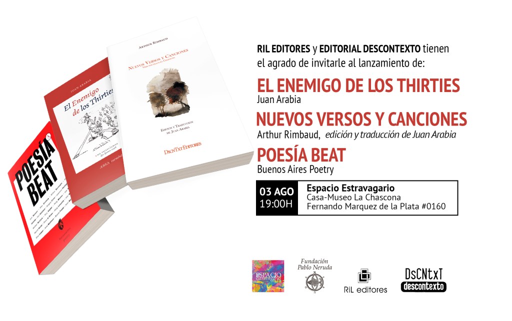 Presentación de El Enemigo de los Thirties – de Juan Arabia (Ril Editores), Nuevos Versos y Canciones – de Arthur Rimbaud (Decontexto Editores) y Poesía Beat (Buenos Aires Poetry)