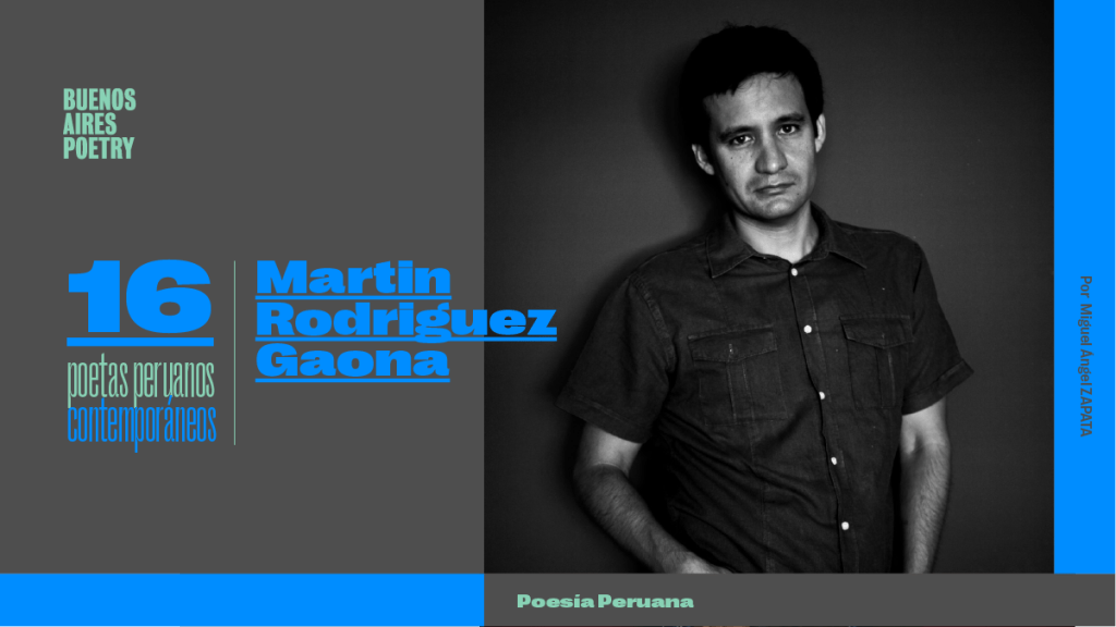 Martín Rodríguez-Gaona es poeta, ensayista y traductor peruano. Entre sus poemarios figuran: Pista de baile (1997), Parque infantil (Pre-Textos, 2005), Códex de los poderes y los encantos (2011), Madrid, línea circular (2013, Premio Cáceres Patrimonio de la Humanidad). Sus ensayos: Mejorando lo presente. Poesía española última: posmodernidad, humanismo y redes (2010) y La lira de las masas. Internet y la crisis de la ciudad letrada (2019, X Premio Málaga) son pioneros en el análisis de la poesía en su adaptación a la cultura digital. Su obra como traductor incluye libros de John Ashbery, John Giorno, Jack Spicer, Brian Dedora y Alice Notley. En la Residencia de Estudiantes organizó recitales y conferencias con poetas como Seamus Heaney, José Watanabe y Gonzalo Rojas, y editó libros de Olga Orozco, Blanca Varela, José Ángel Valente y Jaime Gil de Biedma, entre otros. Acaba de editar el poemario Motivos fuera del tiempo: las ruinas (Pre-Textos, 2020).