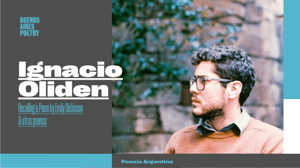 Ignacio Oliden (Buenos Aires, 1997) publica sus ensayos, poesía, cuentos, y traducciones en la revista literaria La Piccioletta Barca (Cambridge, Reino Unido) de la cual es editor. Es co-fundador y escritor en la revista Espacio Mimesis, y tiene publicaciones en antologías de cuentos y en la revista Todo es Historia.