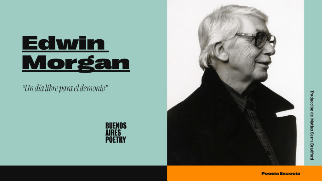 Edwin Morgan (1920-2010) fue traductor de Montale, József Attila, Maiakovski, Racine y Rostand, entre otros. Nació al oeste de Glasgow. Se crió en Rutherglen. Interrumpió sus estudios en 1940 para unirse al Royal Medical. Corps. Regresó a la Universidad de Glasgow en 1946 y se graduó al año siguiente con honores. Fue profesor de esa casa hasta el año 1980.