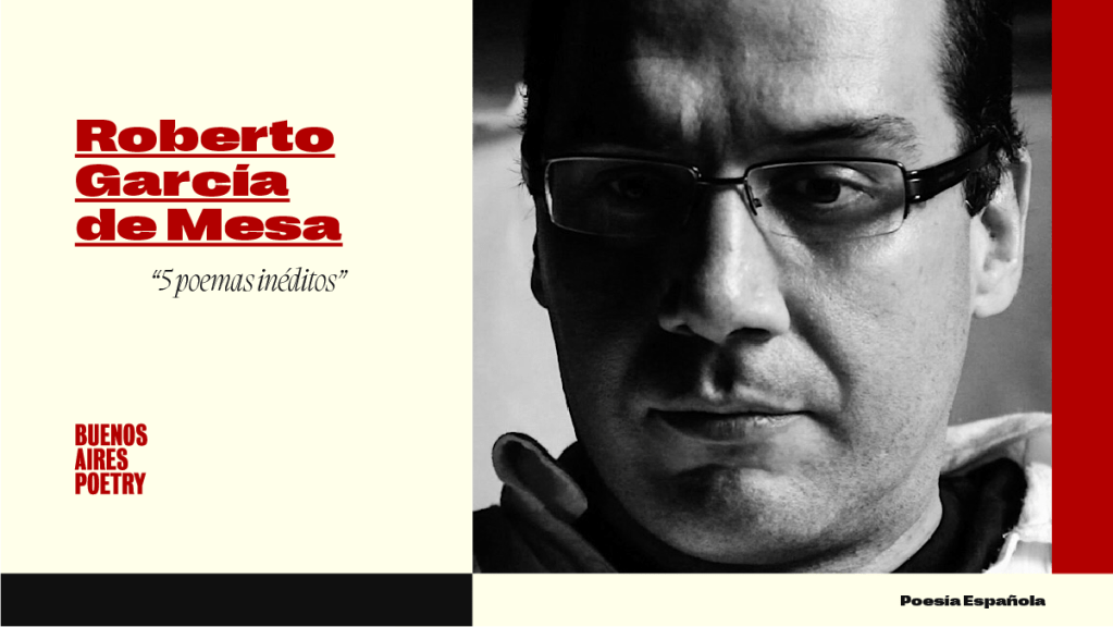 Roberto García de Mesa (Tenerife, España, 1973) es poeta, dramaturgo, narrador, dramaturgista, ensayista, filólogo, comisario de exposiciones, director de escena, artista visual y músico. Es licenciado en Derecho y en Filología Hispánica, además de Doctor en Filología Hispánica. Ha publicado más de sesenta libros de poesía, teatro, narrativa muy breve, ensayo, conversaciones, obra gráfica y ediciones críticas, así como tres cds con sus composiciones musicales. Obras suyas han sido traducidas a varios idiomas (inglés, griego, rumano, francés, italiano, esloveno, alemán y portugués) y sus textos han aparecido en revistas de dieciocho países. Buenos Aires Poetry publicó dos libros de Roberto García de Mesa, en 2020: el primero se tituló Retórica. Superficie de contacto. Razón y canibalismo y el segundo, Sobre la naturaleza de la fragilidad.