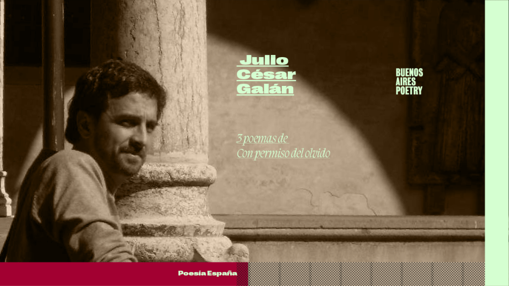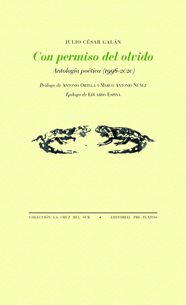 Extraído de Julio César Galán, Con permiso del olvido. Antología poética (1996-2020). Prólogo de Antonio Ortega y Marco Antonio Núñez. Epílogo de Eduardo Espina | Editorial Pre-Textos, Colección La cruz del sur, Valencia, España, 2021