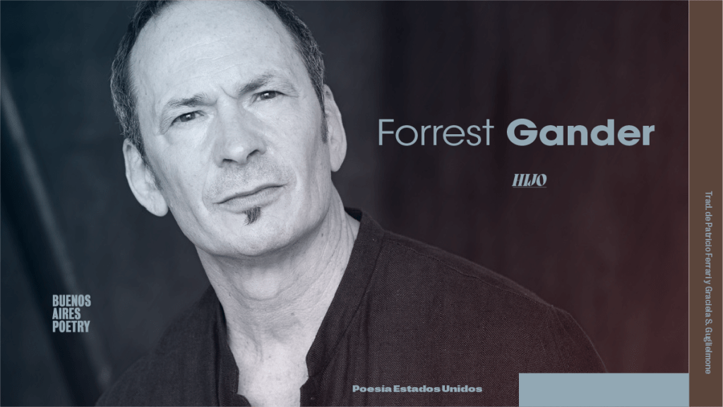 Forrest Gander nació en el desierto de Mojave en Barstow, California. Creció en Virginia y pasó importantes años con la poeta CD Wright –– en San Francisco (California), Dolores Hidalgo (México), Eureka Springs (Arkansas) y Providence (Rhode Island). Con CD Wright, tiene un hijo, el artista Brecht Wright Gander. Gander estudió geología antes de estudiar y dedicarse enteramente a la literatura. Poeta y traductor, es autor de varios libros, entre los cuales los poemarios Eiko & Koma (New Directions, 2013), Core Samples from the World (New Directions, 2011), las novelas As a Friend (New Directions, 2008) The Trace (New Directions, 2014). Es editor y traductor de Panic Cure: Poems from Spain for the 21st Century (Seismicity Editions en USA; Shearsman Editions en UK, 2013) y de libros de los poetas mexicanos Coral Bracho, Pura López Colomé, Alfonso D’Aquino, Valerie Mejer y de dos libros del poeta boliviano Jaime Saenz. También es el traductor de Then Come Back: the Lost Poems of Pablo Neruda (Copper Canyon, 2017). Con Patricio Ferrari es el traductor de la poesia francesa de Alejandra Pizarnik (The Galloping Hour: French Poems, New Directions, 2018) y, con Raúl Zurita, publicó Pinholes in the Night, Essential Poems from Latin America (Copper Canyon, 2014). Su libro de poesía más reciente es Twice Alive (New Directions, 2021). El poema aquí publicado es el que abre Be With (Estar Con), publicado por New Directions en 2018 y premiado con el Premio Pulitzer en 2019. Forrest Gander reside en el norte de California con la artista Ashwini Bhat.
