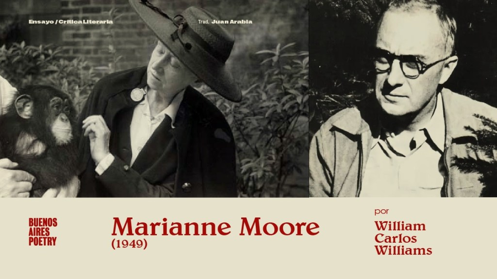 Publicado originalmente en Quarterly Review of Literature, IV, No. 2 (1948), 125-26 — luego compilado en los Selected Essays de William Carlos Williams (New Directions)— el siguiente ensayo de William Carlos Williams ofrece un singular y profundo elogio a la poesía de Marianne Moore: «Esto es lo asombroso de un buen escritor, parece hacer que el mundo venga hacia él para rozar las espinas de su arbusto. De modo que al mirar un objeto aparentemente pequeño, uno siente el torbellino de grandes acontecimientos».