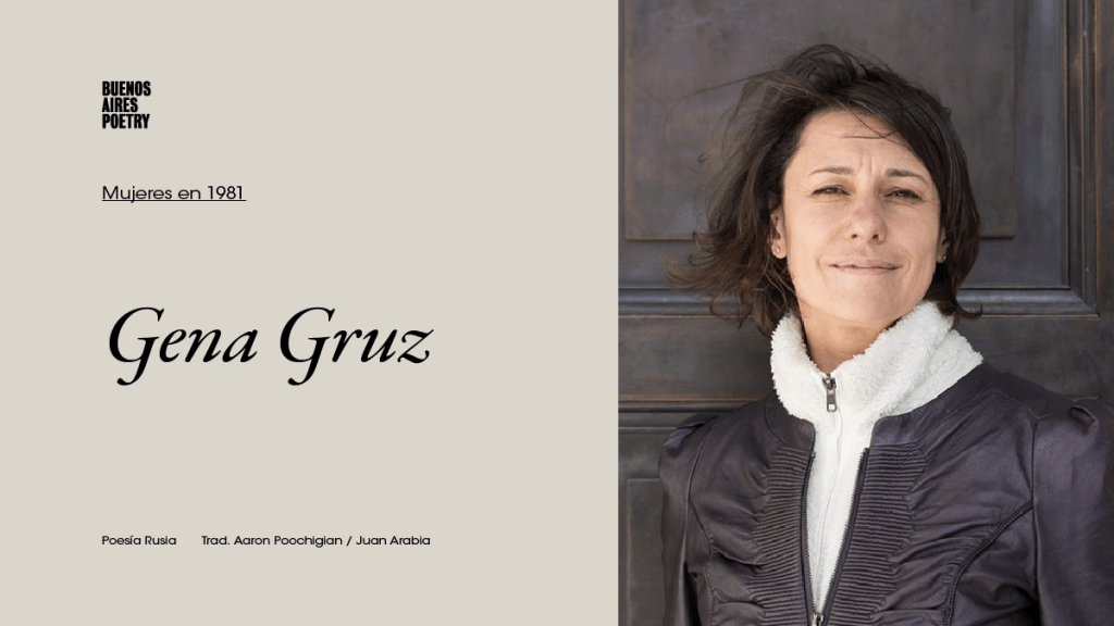 Gena Gruz es una poeta y artista rusa. Nació en la Unión Soviética, se mudó a los EE. UU. cuando era una adolescente y ahora vive en la ciudad de Nueva York. Su obra de arte formó parte de una exposición itinerante “El modernismo y el posmodernismo: el arte ruso del milenio que termina”. Es autora de dos libros de poesía, Radiant Solitude (2018) y Earthly Entities (2019), ambos de Liberty Publishing House, y su poesía forma parte de la antología rusa internacional Artelen, 2021.