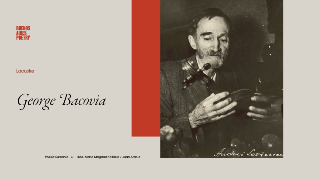 George Bacovia (1881, Bacău – 1957, Bucarest) fue un escritor rumano, cercano al simbolismo francés. Es autor de libros de poesía y prosa escrita en la tradición de la literatura rumana, con influencias evidentes de la gran lírica francesa moderna, admirada por él. Aunque inicialmente fue considerado un poeta menor por la crítica literaria, la recepción de su obra se fue haciendo gradualmente más favorable, hasta llegar a ser reconocido como el más importante poeta simbolista rumano y uno de los más significativos de la poesía rumana moderna.