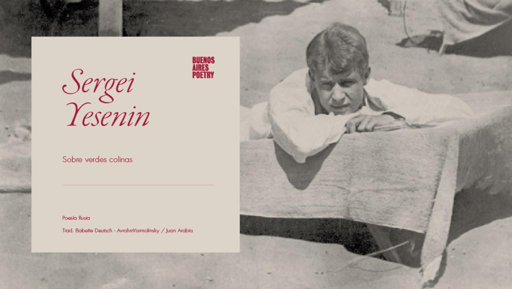 Durante su breve vida, Sergei Yesenin (1895—1925) ganó reconocimiento como una de las mejores voces poéticas del período revolucionario en Rusia. Nacido de padres campesinos, Yesenin inicialmente apoyó la revolución bolchevique, pensando que resultaría beneficiosa para su clase social, pero se desilusionó cuando vio que solo conduciría a la industrialización de Rusia. Un anhelo por un regreso a la simplicidad del estilo de vida campesino caracteriza su obra, como lo hace su uso innovador de imágenes extraídas de la tradición rural. Se le atribuye haber ayudado a establecer el movimiento imaginista en la literatura rusa, que estaba lejanamente relacionado con el movimiento imaginista asociado con el poeta estadounidense Ezra Pound. Yesenin llevó una vida errática y poco convencional, marcada por episodios de embriaguez y locura. Antes de ahorcarse en un hotel de Leningrado, Yesenin se cortó las muñecas y, usando su propia sangre, escribió un poema de despedida.
