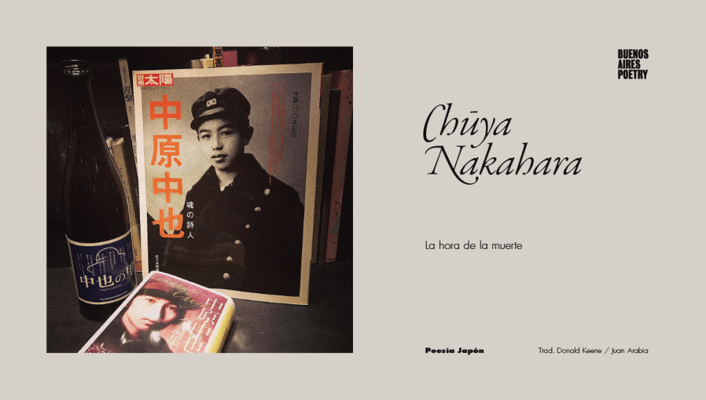Chūya Nakahara 中原 中也 (1907-1937) fue un poeta japonés nacido en la ciudad de Yamaguchi el 29 de abril de 1907 en el seno de una familia acomodada. Desde muy joven, sintió una especial inclinación por la poesía, que se reveló más acusada tras la inesperada muerte de Tsugoro, su hermano menor, en 1915. El padre, médico cirujano del ejército, aspiraba a que su primogénito continuara la tradición familiar y se dedicara a la medicina, pero el joven Chūya quería ser poeta y se sentía alejado de su familia, de la que se distanció finalmente cuando se fue a vivir con la actriz Yasuko Hasegawa en 1924. En ese mismo año, la pareja se traslada a Tokio y la capital se convierte en una enciclopedia para un Chūya ávido de conocimiento que comienza a labrarse su imagen de poeta bohemio influido por la obra de Rimbaud. Tras unos años de infructuosos esfuerzos, Chūya entra finalmente en la Universidad de Lenguas Extranjeras de Tokio en 1931, donde estudia francés hasta 1933, año en el que se casa con Takako Ueno, en un matrimonio arreglado por su familia. En octubre de 1934 nace su primer hijo, que fallece prematuramente en noviembre de 1936. Como consecuencia, Chūya sufre una crisis nerviosa que lo lleva a ser ingresado temporalmente en una clínica psiquiátrica. Tras salir de la clínica y dedicarse durante unos meses a sus tareas de traductor y poeta, la voz de Chūya se apaga definitivamente el 22 de octubre de 1937.
