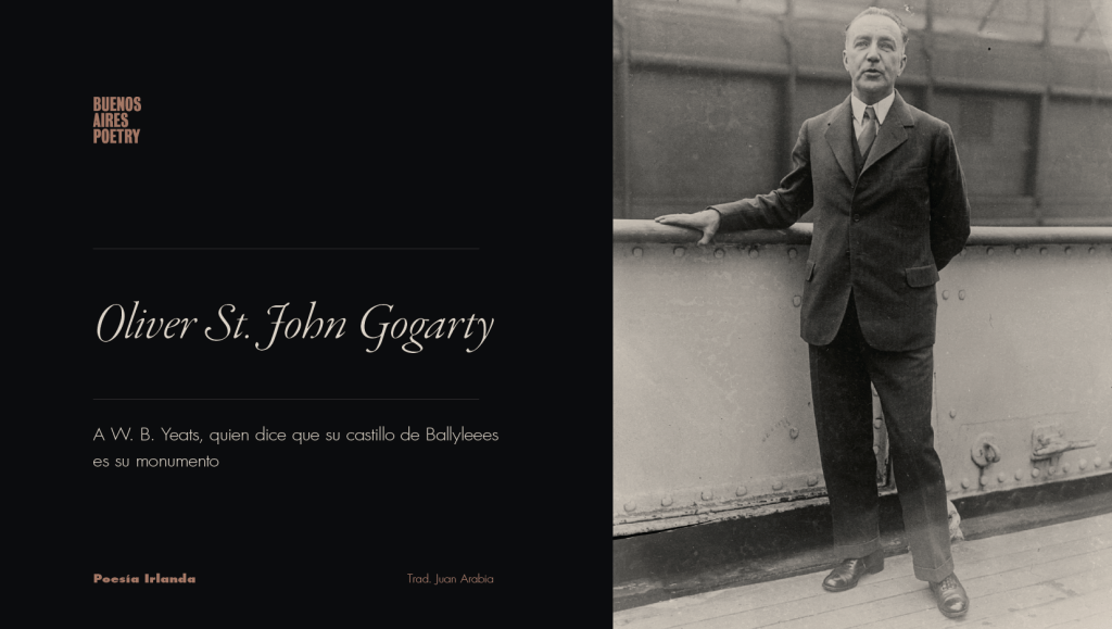 Oliver St. John Gogarty (1878, Dublín—1957, Manhattan, Nueva York) fue un escritor, ingenioso y narrador vinculado al renacimiento literario irlandés, cuyas memorias recrean vívidamente el Dublín de su juventud. Gogarty trabajó como cirujano y también fue senador en el gobierno del Estado Libre Irlandés.