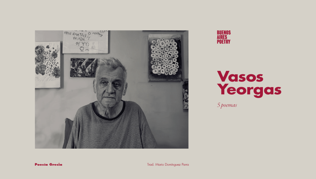 Nacido en 1962, Vasos Yeorgas es uno de los poetas griegos más influyentes y críticos en la vida literaria ateniense de la última década. Dentro de los innumerables oficios que ha desempeñado, destacan los de director y distribuidor de películas, DJ, organizador de conciertos y, en las últimas décadas, los de librero y editor. Precisamente la librería y editorial Bibliotèque, que regentó durante una década, fue un faro en el barrio cultural y anarquista de Exargia. En ella y sus alrededores organizó multitud de actividades culturales con gran impacto en la vida local, sobre todo, literaria, bibliófila, cinematográfica y musical. Su editorial ha sido igualmente un referente de rigor y exigencia que ha marcado una época en Grecia. Durante este año, 2025, ha fundado, junto a la artista Kalirói Spirídonos, una nueva librería y editorial llamada Tilégrafos, en el barrio de Exargia, también, que sigue una trayectoria similar a la del proyecto anterior. Su trabajo poético ha sido deslumbrante y públicamente algo tardío, puesto que su vocación la ha desarrollado con gran intensidad en las últimas décadas. Es muy activo en sus perfiles sociales, donde denuncia con frecuencia muchos problemas y actitudes actuales, sobre todo, de relevancia griega, al mismo tiempo que suele publicar textos poéticos, reflexiones, notas, etc. Entre sus libros destacan Juega la poesía en la repartición (2016, junto al poeta Antonis Antonakos), Poemas que no se escribieron nunca (2021), Cuando la evaporación gotea agua (2022) o Mi querido intenso azul celeste (2024), volumen escrito con motivo de su pérdida paterna, de donde se han seleccionado cinco poemas. Es la primera vez que es traducido al español. Conserva una abundante obra inédita. Su voz poética es profundamente existencialista, melancólica, nostálgica, crítica, rebelde, desgarradora, apasionada e irónica.