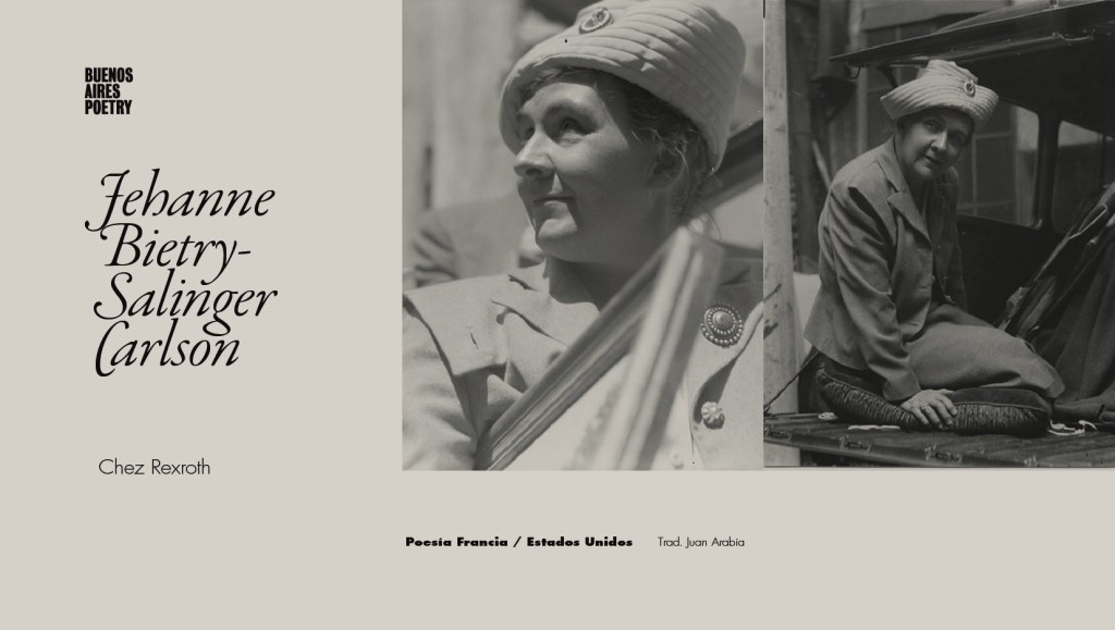 Jehanne Biétry-Salinger Carlson (1897, Feche-l’Eglise, Territoire de Belfort, Franche-Comté, France — 1996 -Pacific Grove, Monterey County, California, USA) fue una poeta y escritora francesa, hija del Pierre Biétry.