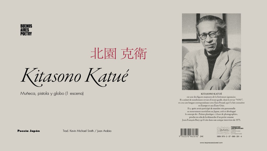 Kitasono Katsue / Kitasono Katué 北園 克衛 vivió entre 1902 y 1978 y fue un destacado poeta vanguardista japonés, tanto de preguerra como de posguerra. Sus precursores de la poesía concreta, lo que él llamó «teoría gráfica» (zukeisetsu), fueron innovadores por su simplicidad léxica, pero con una tipografía dispersa, jugando con márgenes, líneas y paréntesis para desarrollar sus argumentos poéticos y asociaciones semióticas. Kitasano se dedicó a la experimentación literaria y artística, y sus obras han sido descritas por el historiador literario John Solt como «desgarradoras del tapiz del significado».