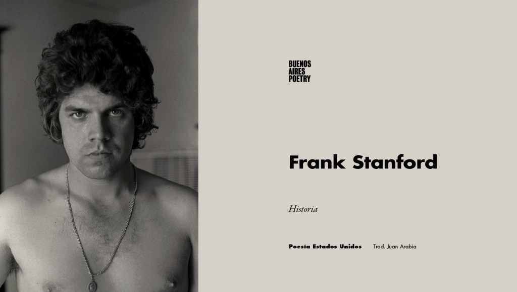Frank Stanford (1948–1978) fue un prolífico poeta estadounidense conocido por su originalidad, imaginería cargada de sensualidad y cruda seriedad emocional. Creció en los estados de Mississippi, Tennessee y luego en Arkansas, donde vivió la mayor parte de su vida y escribió su poesía. Asistió a la Universidad de Arkansas de 1966 a 1971 y estudió administración de empresas durante un semestre antes de cambiarse a literatura inglesa y poesía, pero nunca llegó a concluir la licenciatura. Frank Stanford se suicidó en Fayetteville, Arkansas, el 3 de junio de 1978 a la edad de 29 años.