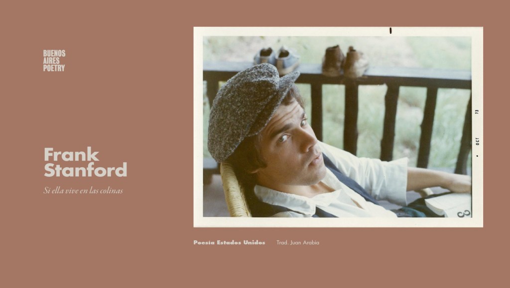 Frank Stanford (1948–1978) fue un prolífico poeta estadounidense conocido por su originalidad, imaginería cargada de sensualidad y cruda seriedad emocional. Creció en los estados de Mississippi, Tennessee y luego en Arkansas, donde vivió la mayor parte de su vida y escribió su poesía. Asistió a la Universidad de Arkansas de 1966 a 1971 y estudió administración de empresas durante un semestre antes de cambiarse a literatura inglesa y poesía, pero nunca llegó a concluir la licenciatura. Frank Stanford se suicidó en Fayetteville, Arkansas, el 3 de junio de 1978 a la edad de 29 años.