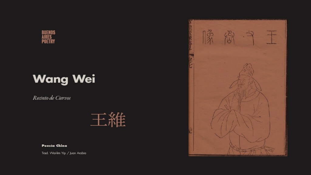 Wang Wei (701-761) es considerado, junto con Du fu y Li Bai, uno de los tres mejores poetas de la dinastía Tang. Muchos de los poemas de Wang Wei expresan su deseo de retirarse del mundo “sucio y ocupado” de la corte a su propiedad en el río Wang, escenario de su famosa secuencia de poemas del río Wang, cuyas descripciones paisajísticas (puramente objetivas) están impregnadas sutilmente de un Conciencia budista.