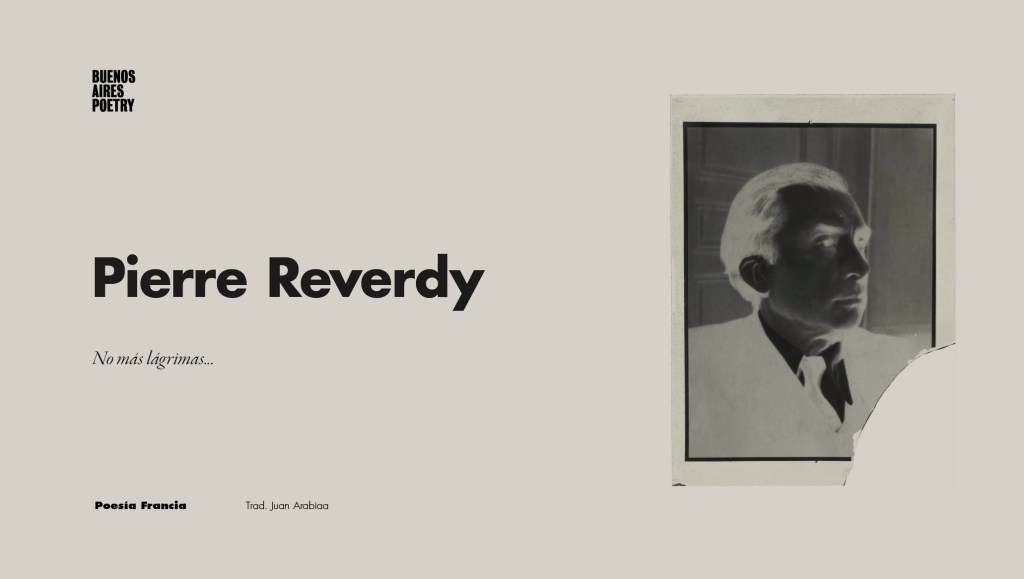 Pierre Reverdy (1889, Narbona — 1960, Solesmes) fue un poeta y moralista francés que reflejó primero la influencia cubista y luego la surrealista. La dificultad de sus poemas limitó su público. Fundó una revista de corta duración, Nord-Sud (1916), para promover el cubismo. Tras inclinarse por el surrealismo en la década de 1920, retomó las técnicas poéticas de inspiración cubista. Reverdy publicó Étoiles peintes (1921), Les Épaves du ciel(1924) y Flaques de verre (1929). En 1926 se retiró a la Abadía de Solesmes, donde permaneció hasta su muerte. En soledad se dedicó a la búsqueda del significado espiritual del mundo físico, expresando esta vocación en las disciplinadas máximas de Le Gant de crin (1927) y Le Livre de mon bord (1948).