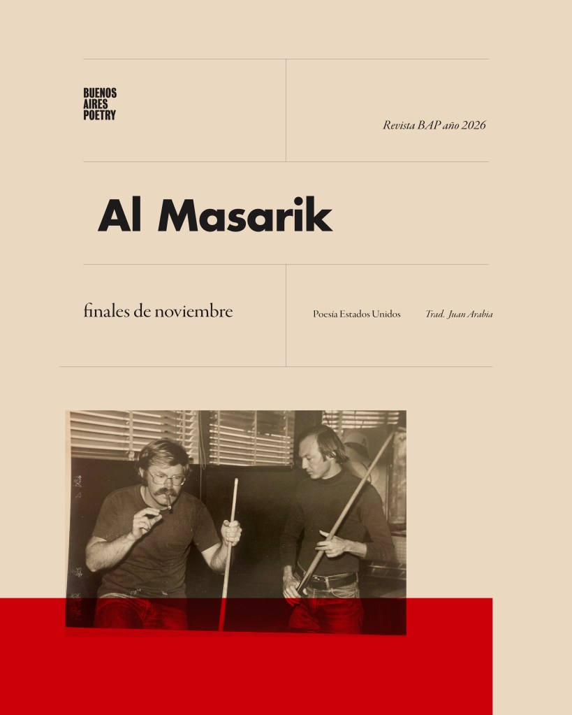 Extraído de Al Masarik, Excuses to be outside: poems, Publisher Duck Down, NV, 1986, p. 41 | Traducción de Juan Arabia | Buenos Aires Poetry 2026