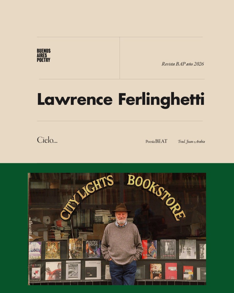 Lawrence Ferlinghetti (1919—2021) fue un poeta y editor estadounidense. En 1953 se radicó en la ciudad de San Francisco donde fundó la ahora emblemática librería y editorial City Lights. Participó del Renacimiento Poético de la ciudad, transformándose en uno de los poetas centrales del Movimiento Beat.