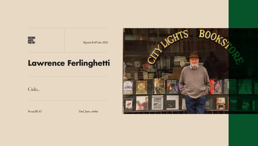 Lawrence Ferlinghetti (1919—2021) fue un poeta y editor estadounidense. En 1953 se radicó en la ciudad de San Francisco donde fundó la ahora emblemática librería y editorial City Lights. Participó del Renacimiento Poético de la ciudad, transformándose en uno de los poetas centrales del Movimiento Beat.