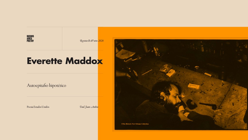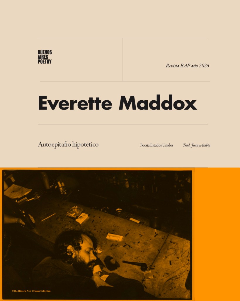 Everette Maddox (1944-1989) fue uno de los poetas locales más célebres de Nueva Orleans. Nacido en Prattville, Alabama, en 1944, se mudó a la ciudad en 1975 para impartir una breve docencia en la Universidad Xavier. Mientras luchaba contra el alcoholismo y otros problemas de salud mental, Maddox vivió en la calle, cuidado por una comunidad cercana de amigos y colegas poetas. Falleció por complicaciones de un cáncer de esófago en 1989, a los 44 años.