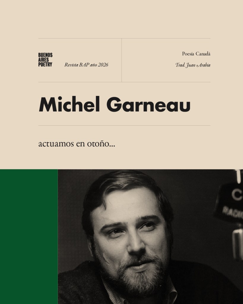 Michel Garneau (1939-2021) fue un poeta, dramaturgo, músico y locutor de radio canadiense. Artista polifacético y autodidacta, inició su carrera radiofónica a los 15 años y llegó a escribir treinta poemarios y veintisiete obras de teatro. Su poesía se caracteriza por versos fluidos y sin rima que reflejan el lenguaje coloquial de Quebec. Reconocido como adaptador y traductor de Shakespeare y García Lorca, sus obras de teatro se han representado en todo el mundo.
