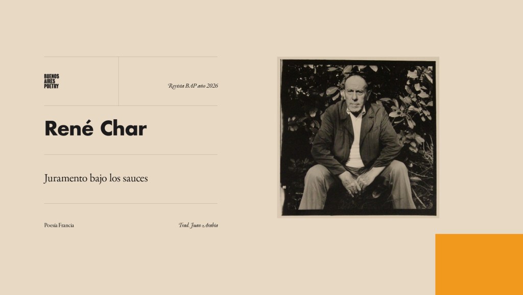 René Char (1907, L’Isle-sur-la-Sorgue, Francia—1988, París) fue un poeta francés que comenzó como surrealista pero que, tras sus experiencias como líder de la Resistencia en la Segunda Guerra Mundial, escribió versos económicos con matices moralistas.