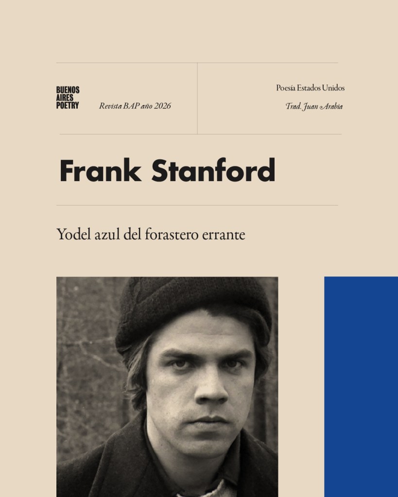Frank Stanford (1948–1978) fue un prolífico poeta estadounidense conocido por su originalidad, imaginería cargada de sensualidad y cruda seriedad emocional. Creció en los estados de Mississippi, Tennessee y luego en Arkansas, donde vivió la mayor parte de su vida y escribió su poesía. Asistió a la Universidad de Arkansas de 1966 a 1971 y estudió administración de empresas durante un semestre antes de cambiarse a literatura inglesa y poesía, pero nunca llegó a concluir la licenciatura. Frank Stanford se suicidó en Fayetteville, Arkansas, el 3 de junio de 1978 a la edad de 29 años.