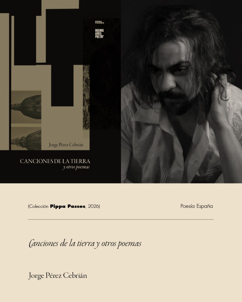 Jorge Pérez Cebrián (Requena, Valencia, 1996) estudió Filosofía e Historia del Arte en la UNED. Es autor de La voz sobre las aguas (Valparaíso, 2019); La lumbre del barquero (Olé Libros, 2021); De cuánta noche cabe en un espejo (Pre-Textos, 2022), con el que obtuvo el XLII Premio Internacional de Poesía Arcipreste de Hita; Pero nunca los huesos de las aves (Pre-Textos, 2024), galardonado con el XVI Premio de Poesía Joven RNE-Fundación Montemadrid y el Premio de la Crítica de la Comunidad Valenciana en 2025; y la novela experimental Una mano al otro lado de la ventana (Sonámbulos, 2025). La crítica ha señalado en su obra un hondo sustrato reflexivo y una firme concepción de la poesía como forma de conocimiento. El poeta y crítico Santos Domínguez Ramos ha destacado en su escritura “un cimiento sólido de pensamiento, concepción del mundo y fervor por la palabra”. Canciones de la tierra y otros poemas (Buenos Aires Poetry, 2026), su quinto libro de poesía, profundiza en esa línea a través de una indagación lírica sobre la condición humana, el lenguaje, la memoria y la violencia.