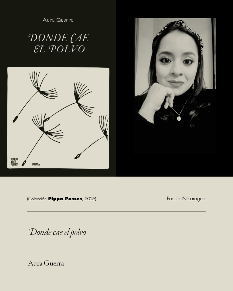 Aura Guerra (Managua, Nicaragua, 1986) nació en Nicaragua y fue acogida por Canadá como su segunda patria, donde reside actualmente. Es licenciada en Mercadeo y Publicidad. Se formó como Chef de Partie en GalaStars Culinary, en Manila, Filipinas; también estudió Gastronomía y Alta Cocina en el Instituto Gastronómico de las Américas, en La Paz, Bolivia. Egresó del Laboratorio de Novela (Nicaragua, generación 2020–2021) y actualmente cursa el máster en Escritura Creativa en la Universidad de Salamanca.
